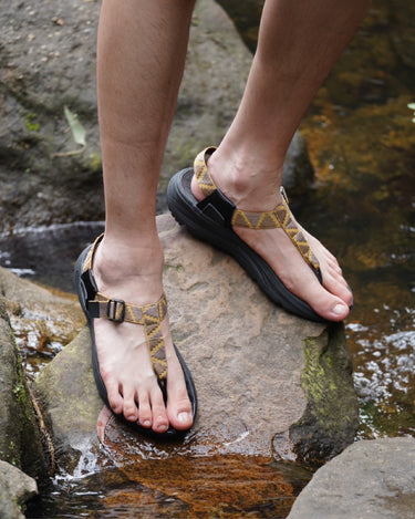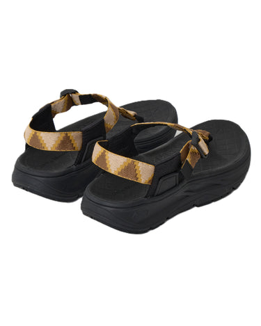 White Mountaineeringとrig footwear 'mguu'のコラボレーションモデル。フリップフロップタイプで、甲部分を極限まで減らすことにより、まるで裸足で歩いているかのような感覚です。リカバリーに必要な機能を持つ、3層構造のリカバリーソールで、フットベッドには衝撃吸収性の高いオリジナル素材を採用し、膝腰などへの負担を軽減。ミッドソールはバケットシート型にすることにより、グラつきを抑え安定した歩行を実現。アウトソールには軽量リサイクルラバーを使用しています。オリジナルのジャカードテープを使用し、White Mountaineeringらしい色使いでアレンジしました。