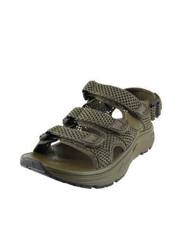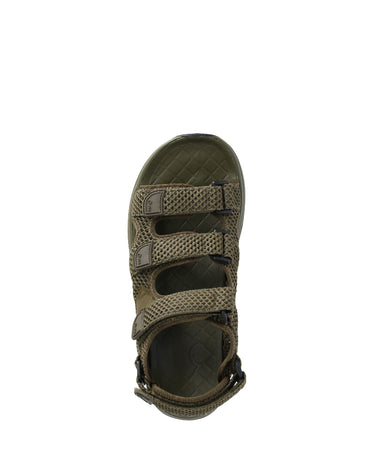 3本ストラップの kuvaa(クーバ)はアッパー素材にオープンメッシュ素材を採用し通気性抜群。3本のマジックテープにより甲幅を微調整できます。ヒール部分のバックストラップはべルクロで調整でき、取り外ししてスライドサンダルとしても使用可能です。