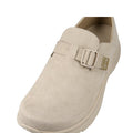 アッパーのヴィーガン・スエードはクラレ社のクラリーノを採用し、本革よりも耐久性や水汚れに強く気にすることなくデイリーユースにできるアイ テムです。