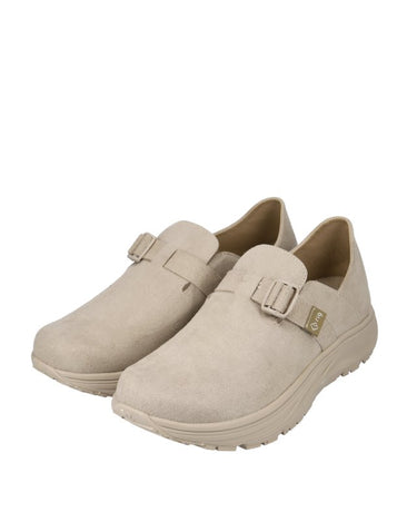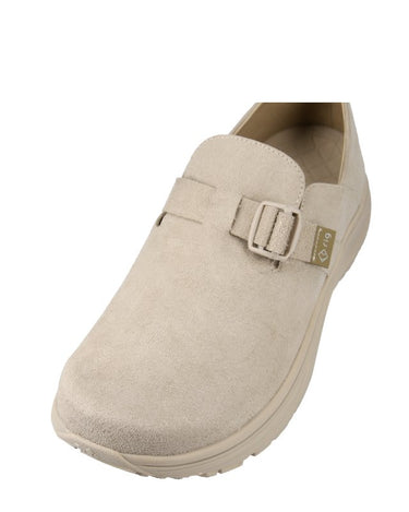 アッパーのヴィーガン・スエードはクラレ社のクラリーノを採用し、本革よりも耐久性や水汚れに強く気にすることなくデイリーユースにできるアイ テムです。
